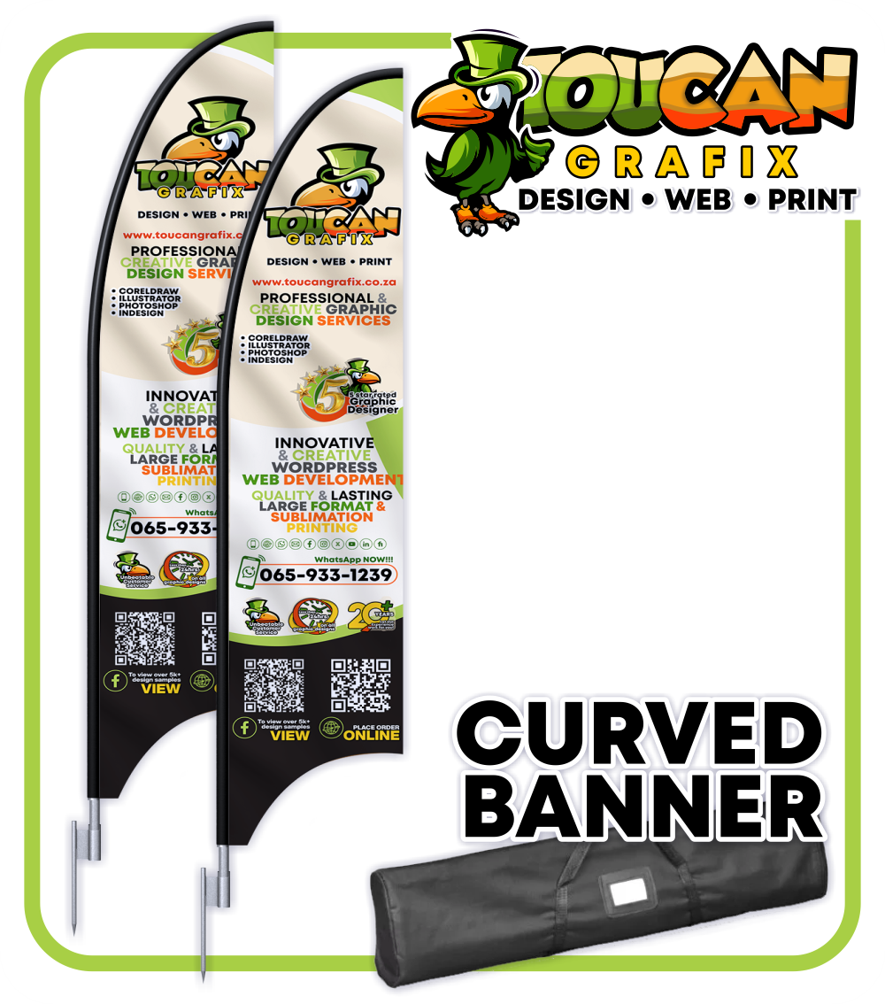 The Curved Banner, also known as the Feather Banner, is a sleek and effective way to increase brand visibility. Combining the best features of Sharkfin and Telescopic banners, it features a graceful curve at both the top and bottom while maintaining full width throughout, ensuring your message is clear and attention-grabbing. Suitable for both indoor and outdoor use, this banner is versatile for a wide range of events and promotions.