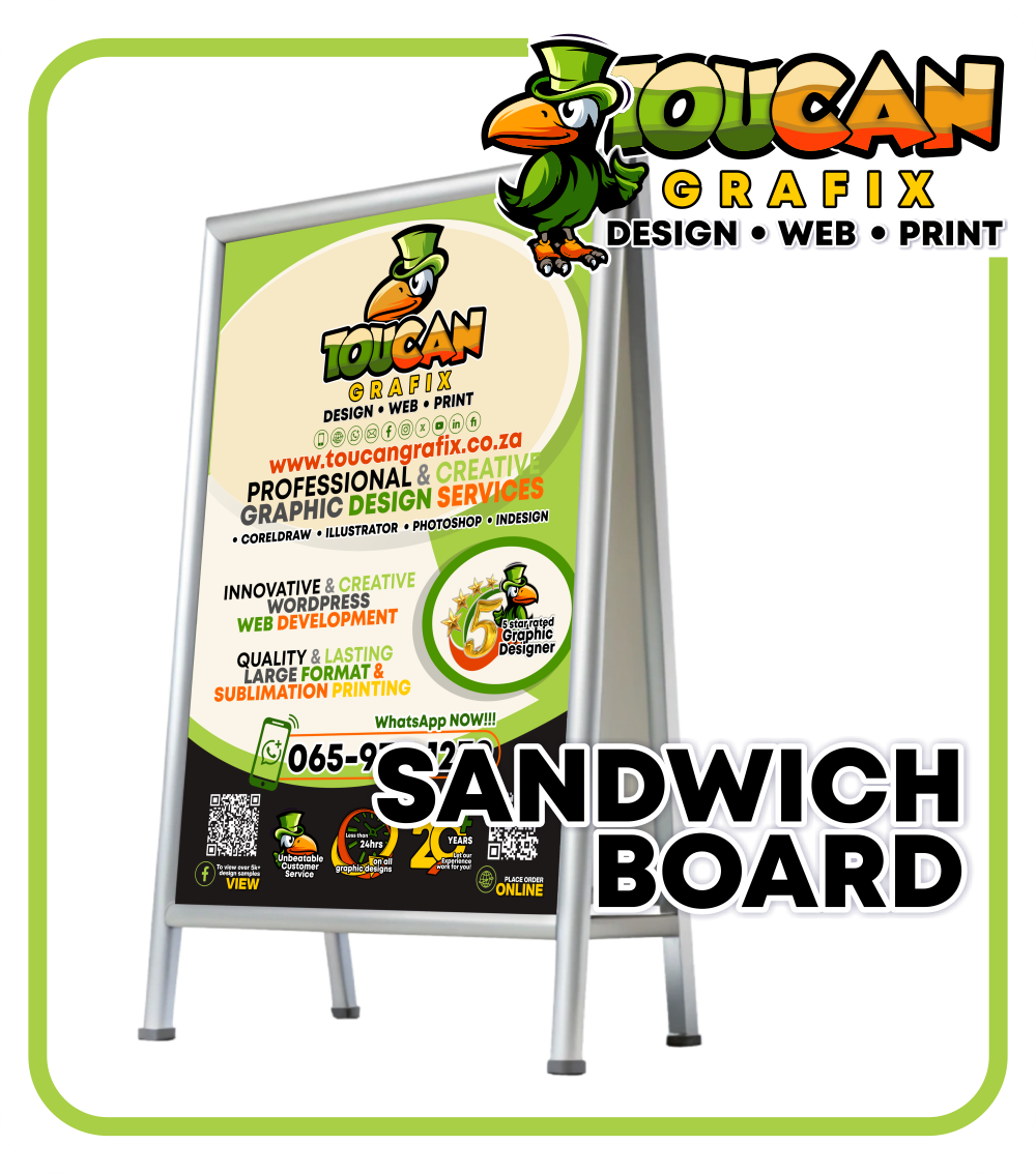 Frequently seen on pavements outside retail stores and food outlets, sandwich boards are also widely used at exhibitions, corporate events, schools (e.g., sports days, tuck shops), and food stalls. Their high visibility and ability to clearly present key messages—such as menus, directions, promotions, or announcements—make them highly effective.