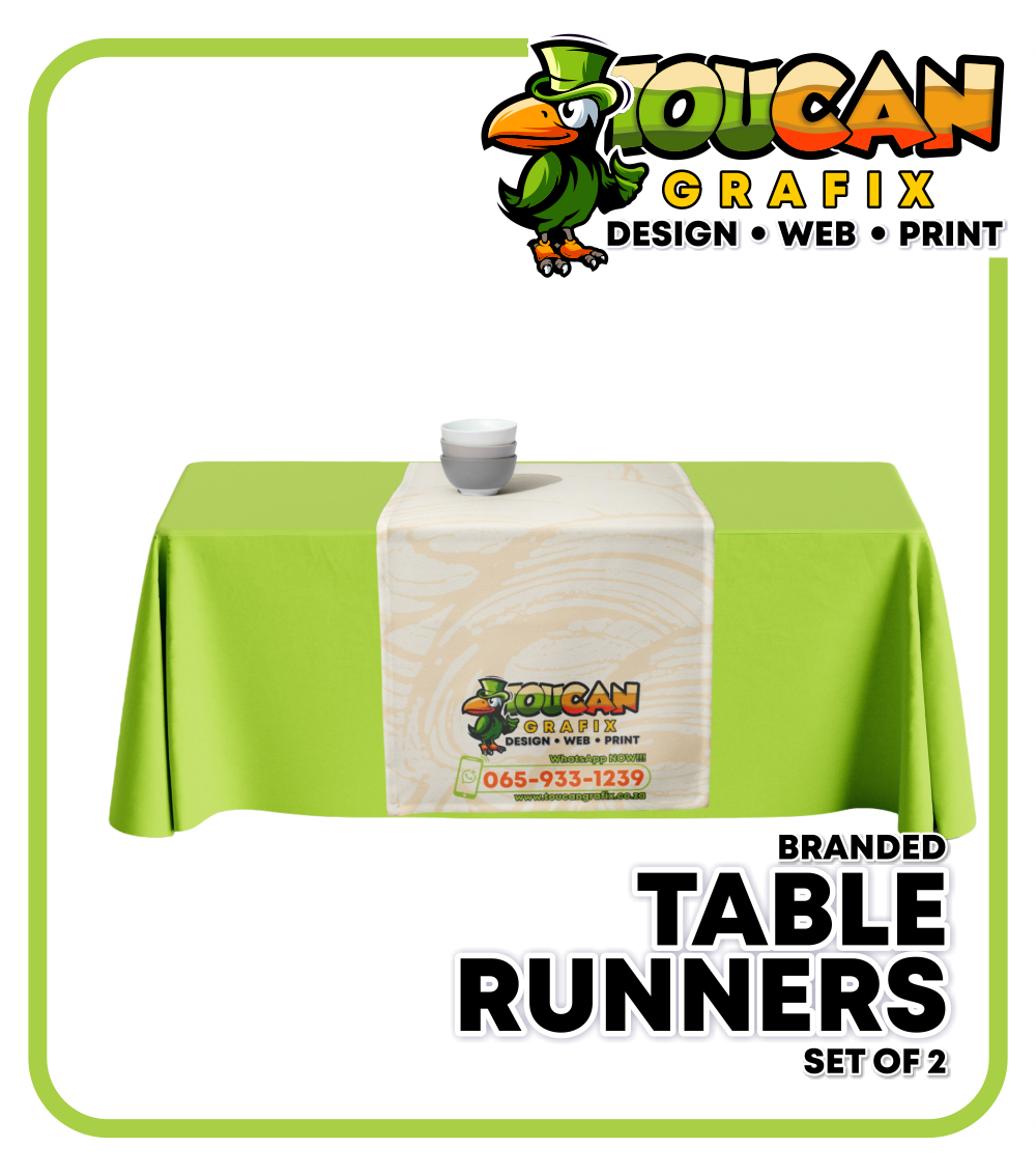 Custom-branded table runners are a versatile way to showcase your brand, fitting any table size or specification. They provide an additional branding opportunity while completing your corporate presentation with a polished, professional look. Whether you’re hosting a trade show, golf day, product demonstration, or any indoor or outdoor event, these table runners enhance your overall setup.